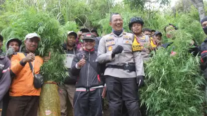 Pantauan tvOnenews.com, puluhan ribu pohon ganja ini ditemukan di tengah hutan yang dipenuhi semak belukar dengan tingkat kemiringan tebing yang curam dan membutuhkan perjuangan untuk menjangkaunya.