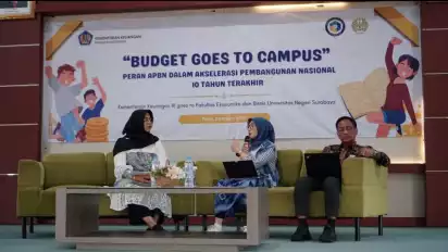 Surabaya, tvOnenews.com - Kementerian Keuangan melalui Direktorat Jenderal Anggaran (DJA) bekerjasama dengan Program Studi S1 Ekonomi Fakultas Ekonomika dan Bisnis Universitas Negeri Surabaya (FEB UNESA), sukses menyelenggarakan acara Budget Goes to Campus dengan tema “Peran APBN Dalam Akselerasi Pembangunan Nasional 10 Tahun Terakhir”.