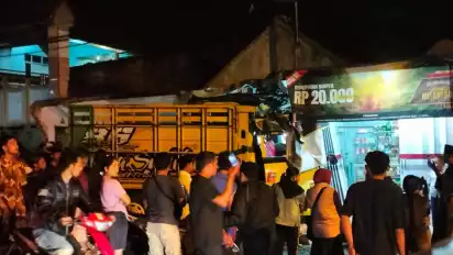 Lumajang, tvOnenews.com - Diduga alami rem blong, sebuah truk berwarna kuning dengan Nopol N 8260 YG, yang dikemudikan oleh Sukron menabrak toko kelontong di pinggir Jalan Raya Senduro, Kecamatan Senduro, Kabupaten Lumajang, Senin malam (7/10) pukul 18.52 WIB.
