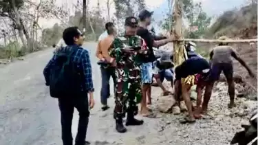 “Besok kami datangkan alat berat dan mesin penggilas untuk membuat drainase sementara dan menguruk serta melakukan pengerasan sementara jalan menggunakan sirtu dan lainnya,” katanya. Selasa, (15/10).