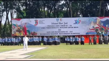 Pencapaian tersebut terungkap saat pelaksanaan upacara peringatan puncak Hari Jadi Bojonegoro (HJB) ke-347 disampaikan oleh Penjabat Bupati Bojonegoro adriyanto, Minggu (20/10) di Alun-Alun Bojonegoro.