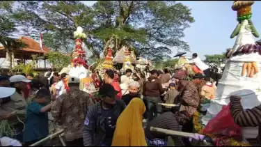 Ratusan Warga di Gresik Selatan Rela Berdesak desakan Demi Berebut Gunungan Hasil Pertanian