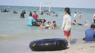 Pantai Pasir Putih Dalegan Gresik Dipadati Wisatawan, Fasilitas Baru Segera Dibangun