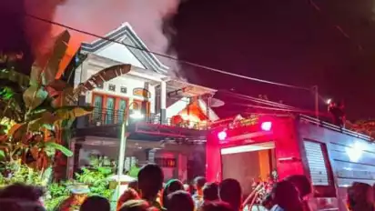Tak berselang lama Api dengan cepat membakar seluruh isi rumah di lantai bawah dan atas. Ratusan warga berjibaku memadamkan api dengan peralatan seadanya.