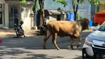 Polisi terpaksa menutup jalan raya dari dua sisi, menghindari amukan sapi. Aksi sapi ini berakhir di halaman toko roti. Saat itulah, pemiliknya tiba. Sapi bisa dijinakkan dengan cepat. Kemudian pemiliknya menggiring sapi ke pasar. Aksi nyentrik sapi ini sempat menjadi tontonan warga. (HAPPY OKTAVIA/act)