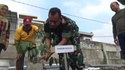 Surabaya, tvOnenews.com - Jajaran Kodim 0832/South Surabaya menggelar aksi tanam pohon di Pemukiman Jelidro, Sambikerep, Kecamatan Lakarsantri, sebagai bentuk dukungan terhadap program unggulan Kepala Staf Angkatan Darat (KSAD) Jenderal TNI Maruli Simanjuntak, yang bertema Menyatu dengan alam.