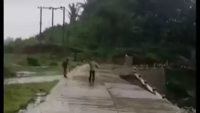 Tulungagung, tvOnenews.com — Tanggul pengaman jalan gunung tugel di Desa Samar, Kecamatan Pagerwojo, Tulungagung ambrol dan longsor usai hujan deras mengguyur wilayah Tulungagung. Akibatnya sebagian ruas jalan di gunung tugel yang baru genap setahun dibangun itu ikut ambles dan nyaris putus total.