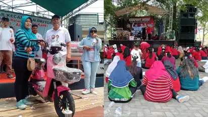 Kemeriahan kampanye akbar Yani-Alif seperti yang terlihat di Domas, Kecamatan Menganti. Sejak warga masyarakat Menganti tumpah ruah membanjiri jalanan desa untuk mengikuti jalan sehat dan senam massal.