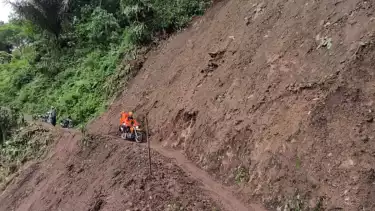 “Kejadiannya itu Kamis malam, Jumat pagi saya lewat sudah longsor. Ini jalan satu-satunya yang menghubungkan Desa Ngranget menuju Desa Bodak,” kata Bikan.