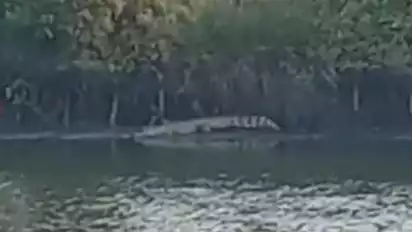 Sidoarjo, tvOnenews.com - Kemunculan buaya raksasa sepajang hampir 4 meter menghebohkan warga Segoro Tambak, Kecamatan Sedati, Kabupaten Sidoarjo. Selain buaya raksasa, kemunculan buaya berukuran dua meter juga terjadi di sebelah timur jembatan dan kerap kali ditemui warga.