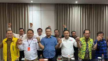 Surabaya, tvOnenews.com - Usai KPU Provinsi Jawa Timur menetapkan Pasangan Khofifah-Emil meraih suara terbanyak dalam proses rekapitulasi berjenjang di tingkat provinsi, tim pemenangan provinsi (TPP) Khofifah-Emil langsung bertemu dengan partai pendukung di salah satu hotel di Surabaya, tak jauh dari lokasi rekapitulasi yang digelar oleh KPU provinsi Jawa Timur.Â