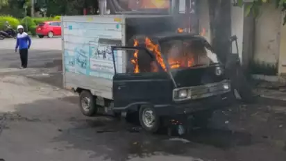 Ponorogo, tvOnenews.com - Diduga terjadi korsleting listrik pada mesin sebuah mobil boks dengan nomor polisi AE 9411 S, yang dikemudikan Yudi Ardian terbakar di simpang empat Tonatan Ponorogo, tepatnya di Jalan Basuki Rahmat.