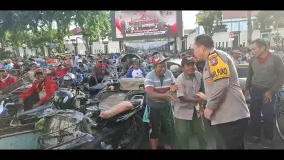 Surabaya, tvOnenews.com – Ratusan abang tukang becak di Surabaya meriahkan peringatan 28 tahun pengabdian Akademi Kepolisian (Akpol) angkatan 96, yang digelar di halaman Polrestabes Surabaya, Kamis (19/12) pagi. Kehadiran Wakapolda Jatim Brigjen Pol Pasma Royce beserta sejumlah alumni Akpol 96, membawa kebahagiaan tersendiri bagi para tukang becak yang hadir dalam acara tersebut.