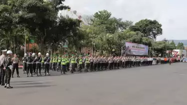 Batu, tvOnenews.com - Dalam rangka kesiapan pengamanan menyambut Natal 2024 dan Tahun Baru 2025 (Nataru), Polres Batu menggelar Apel Gelar Pasukan Operasi Lilin Semeru 2024. Apel ini dipimpin langsung oleh Kapolres Batu AKBP Andy Yudha Pranata bertempat di Jalan Gajah Mada Alun-alun Kota Batu, Jumat (20/12).