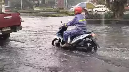 Bahkan derasnya hujan pada Minggu (22/12) juga membuat banjir setinggi lutut orang dewasa, yang menyebabkan beberapa kendaraan roda dua mengalami mogok mesin