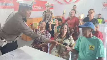 Lamongan, tvOneNews.com - Satlantas Polres Lamongan, menggelar pengobatan gratis dan bagi-bagi jas hujan gratis. Kegiatan ini dilaksanakan dalam rangka mendukung pelaksanaan Operasi Lilin Semeru 2024, di Pos Pelayanan Natal dan Tahun Baru Terminal Lamongan, Selasa (24/12).