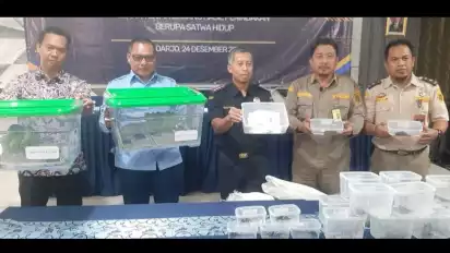 Sidoarjo, tvOnenews.com - Libur Natal dan Tahun Baru, petugas Bea dan Cukai Juanda berhasil menggagalkan penyelundupan puluhan satwa ilegal yang akan diekspor ke negara Hongkong, Selasa (24/12/2024).