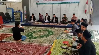 Acara Khotmil Quran dan doa bersama menjelang akhir tahun 2024 ini digelar serentak oleh jajaran MUI Kota Surabaya, salah satunya di pendopo Kecamatan Sukolilo Surabaya. Puluhan peserta dari berbagai elemen masyarakat dan TNI Polri ini, mengikuti istighosah dan doa bersama dengan khusuk dan khidmad.