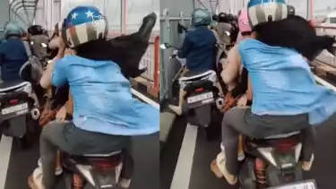 Tak ada pilihan lagi bagi para pemotor selain melakukan hal tersebut. Saat cuaca buruk terjadi di atas Jembatan Suramadu. Jika memaksa melintas, risikonya pengendara terjatuh dari motor akibat kencangnya terpaan angin laut ini.