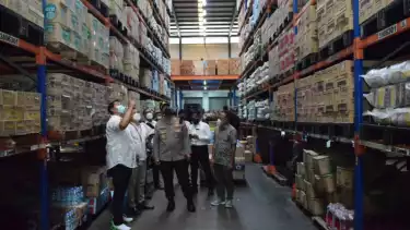 Sidoarjo, Jawa timur - Polisi melakukan sidak ketersediaan minyak goreng di sejumlah gudang minimarket di Gedangan, Sidoarjo, Senin (21/2/2022). Hasilnya suplai minyak goreng dari pihak supplier memang terbatas.