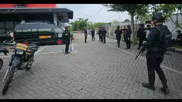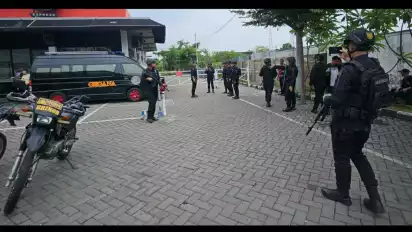 Sidoarjo, tvOnenews.com - Polresta Sidoarjo memberikan keterangan terkait temuan sebuah koper troli berwarna abu-abu mencurigakan yang dikhawatirkan berisi benda atau bahan mudah meledak, yang ditemukan petugas SPBU Arteri Porong, Sidoarjo.