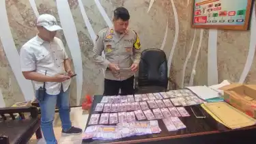 Usai menemui korban, polisi langsung mendatangi rumah pelaku dan langsung melakukan penggeledahan dan berhasil mengamankan ratusan lembar uang kertas mainan berbagai pecahan.