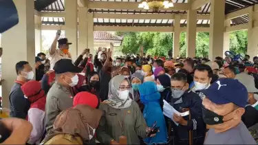 Ribuan orang berdesak-desakan memadati paseban alun-alun Ponorogo, untuk membeli minyak goreng pada operasi pasar minyak goreng, yang digelar Pemerintah Kabupaten (Pemkab) Ponorogo lewat Dinas Perdagangan, Koperasi, dan Usaha Mikro (Disperdagkum).