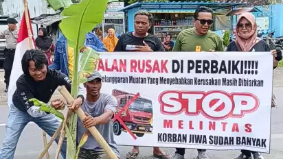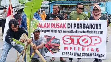 Jember, tvOnenews.com - Warga Puger Jember menuntut pemerintah untuk melakukan perbaikan jalan yang rusak. Ratusan massa atas nama Puger Melawan ini datang ke kota Jember. Massa menuju ke Pendopo Arya Wahyawibawagraha Jember dengan 7 truck dan 7 Elf.