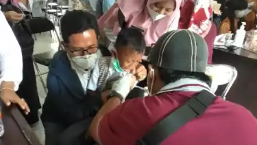 "Anak saya nangis karena takut pada jarum suntiknya. Namun setelah dibatu petugas kedua tangan dan badanya dipegang dengan erat, akhirnya anak saya baru bisa di suntik vaksin," ungkap Kharizah orang tua siswa.