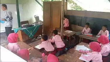 "Hampir semua bangunan sekolah rusak pak. Tapi meski rusak sebagian kelas masih bisa digunakan. Untuk bangunan sekolah yang paling parah dan sangat bahaya kalau digunakan belajar mengajar, maka siswa SDN untuk kelas II ditaruh di tempat parkiran motor," terang Kepala Sekolah, Maskur Taufik.