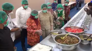 Di dapur SPPG, Wamen Veronica Tan melihat dan mengecek secara langsung proses pengemasan sejumlah menu makanan dan distribusi makanan bergizi gratis.Â