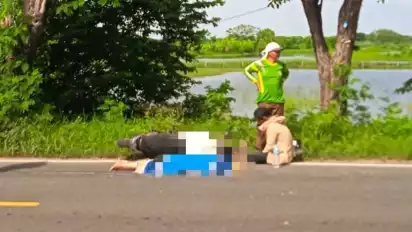 Gresik, tvOnenews.com - Pasangan suami istri (Pasutri) di Gresik terlibat kecelakaan maut saat melintas di raya Gumeng, Bungah. Motor yang dikendarainya tiba-tiba oleng dan terguling ke aspal jalan.