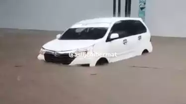 Derasnya arus air yang membanjiri ruas jalan Kaliurang membuat sebuah minibus terseret arus. Minibus berwarna putih tersebut terseret hingga beberapa meter.Â