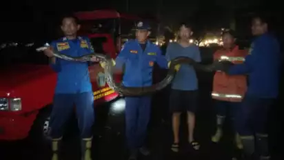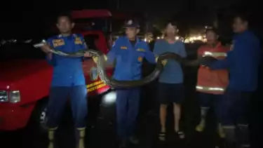 "Setelah berjibaku selama 45 menit, kami berhasil menangkap ular piton sepanjang 3 meter," jelas Suyono, Kamis (23/1).