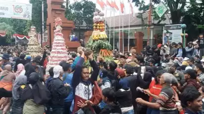Peringati Hari Jadi Kabupaten Sidoarjo ke 166, Warga Berebut Gunungan Sedekah Bumi