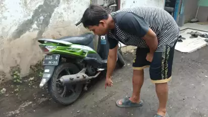 Iwang Taruna (Korban) pemilik motor mengatakan, jika sepeda motornya diparkir di dapur samping rumahnya.