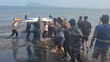 Sejumlah warga yang kebetulan ada di lokasi wisata pantai itu langsung heboh melihat pesawat latih berkode PK-BYK yang sebelumnya terlihat terbang dari arah selatan itu.