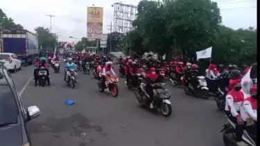 Mereka berkonvoi dengan menggunakan enam mobil komando dan lebih dari 750 motor yang menyebabkan arus lalu lintas di jalur Sidoarjo-Surabaya tersendat.