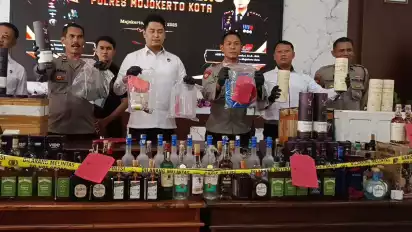 "Botol yang telah terisi miras kemudian disegel, dengan cara memberi tutup botol dengan plastik segel dan dicelupkan ke air mendidih," ucap Kasat Reskrim Polres Mojokerto Kota.