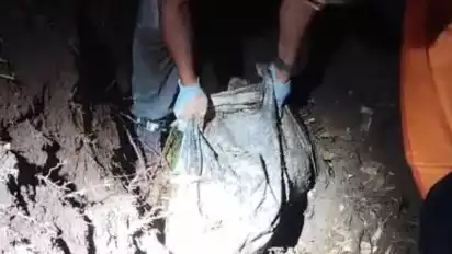 Lalu membawa karung terebut kemudian menguburnya.