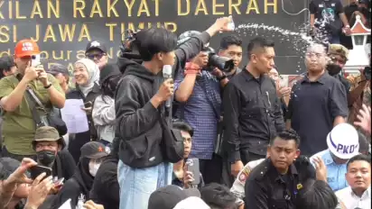 Kecewa karena yang menemui mereka bukan Ketua DPRD Jatim, mahasiswa sempat menyiramkan air minum ke arah kedua anggota DPRD Jatim sebagai peringatan agar aksi mereka bisa dikabulkan.