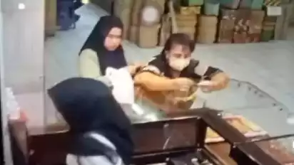 "Disaat perhatian karyawan saya ke tenan pelaku ini, pelaku yang memakai jilbab warna hitam langsung mengambil dan memakainya," ujar Nur Khusaini pemilik toko emas Barokah kepada awak media, Sabtu (22/2).