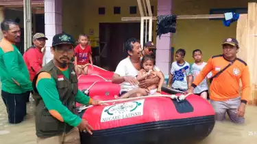 Sementara di Desa Ngampel, air mulai surut, namun masih ada genangan di jalan lingkungan dengan ketinggian 10-15 cm. BPBD Gresik juga menerjunkan perahu untuk membantu evakuasi warga di beberapa lokasi terdampak.