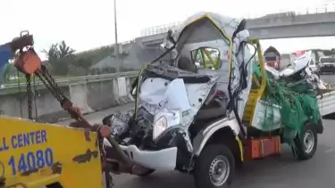Diduga Sopir Mengantuk, Pikap Muat Jeruk Tabrak Truk di Jalan Tol Ngawi. Sopir Tewas di Tempat