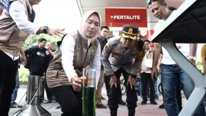 Gresik, tvOnenews.com - Untuk mengantisipasi terjadinya praktik pengoplosan bahan bakar minyak (BBM) dan memastikan stok serta kualitas bahan bakar minyak yang dijual kepada konsumen telah sesuai dengan standar, jajaran Polres Gresik bersama UPT Metrologi Gresik menggelar inspeksi mendadak (sidak) di dua stasiun pengisian bahan bakar umum (SPBU) Pertamina di wilayah Kabupaten Gresik, Rabu (5/3).