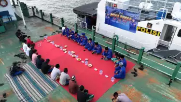 Direktorat Polisi Air dan Udara (Ditpolairud) Polda Jatim menggelar kegiatan inovatif “Buka puasa On The Ship” di jalur pelayaran Surabaya bersama para nelayan.