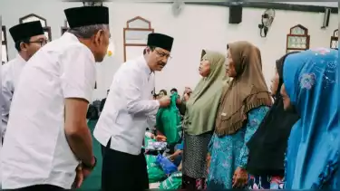 Nganjuk, tvOnenews.com - Menteri Sosial Saifullah Yusuf (Gus Ipul) dan Wakil Menteri Sosial Agus Jabo Priyono melakukan Safari Ramadan di Masjid Agung Al Jali, Desa Bungur, Kecamatan Sukomoro, Kabupaten Nganjuk, Jawa Timur, Minggu (9/3).