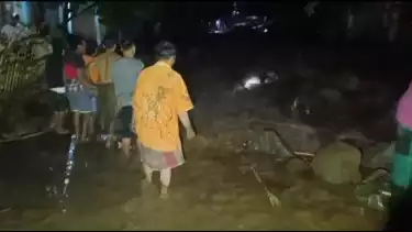 Bondowoso, tvOnenews.com - Banjir bandang kembali menerjang Kabupaten Bondowoso, Rabu (12/3) malam. Hujan terus menerus sepanjang hari menyebabkan banjir bandang di Desa Sumber Salak, Kecamatan Curahdami, Bondowoso.