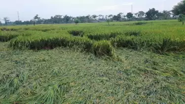 Probolinggo, tvOnenews.com - Puluhan hektare tanaman padi terancam gagal panen akibat diterjang banjir di wilayah Kabupaten Probolinggo. Sebagian besar lahan pertanian rusak, tampak tanaman padi yang hampir siap panen roboh di Desa Sumurdalam Kecamatan Besuk Kabupaten Probolinggo.
