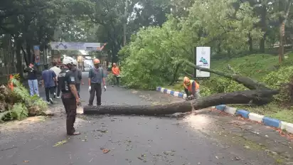 Akibatnya akar tidak mampu menopang pohon yang berukuran besar hingga pada akhirnya roboh menutup akses jalan raya.